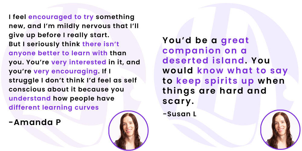 My goal is to be collaborative. In coaching certification programs you're taught to only ask questions, and not offer any concrete guidance, but the best and most helpful coaching sessions that I have received were collaborative, so that's my approach because that's what feels most natural.I'm part coach, part cheerleader, and part peer.